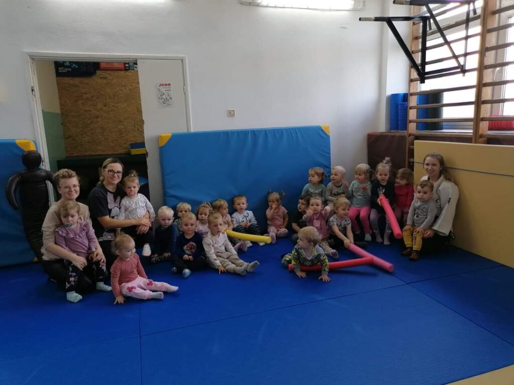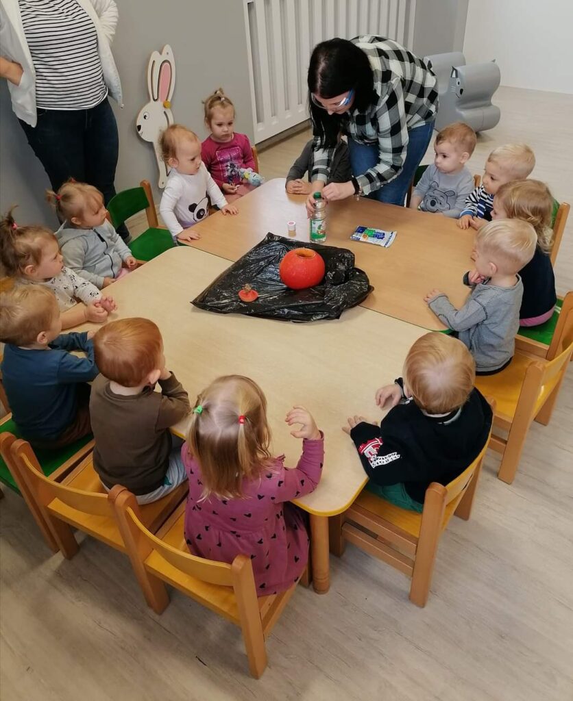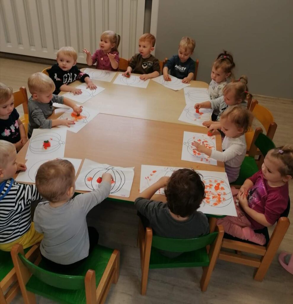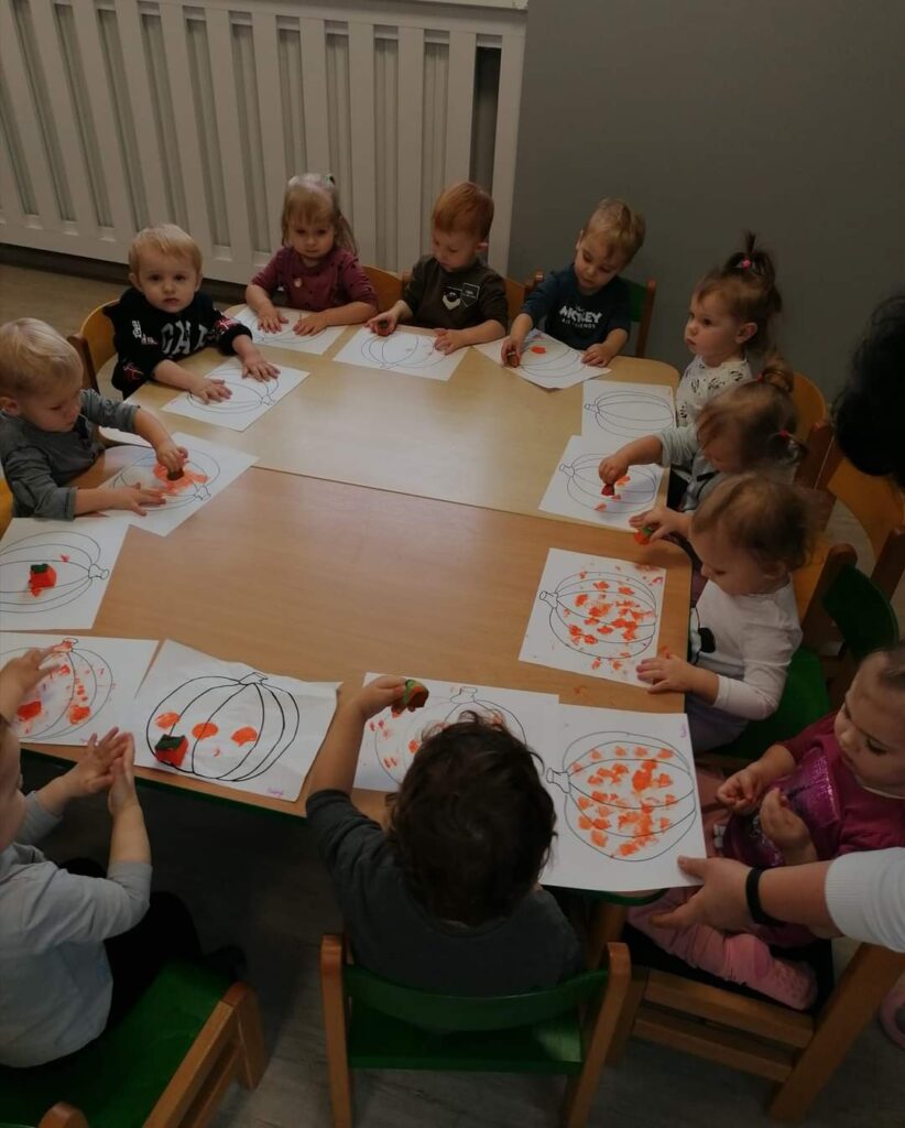 Październik przygotował nam wiele niespodzianek. Nauczyliśmy się jak ubierać się stosownie do pogody.Poznaliśmy jesienne warzywa ,zwierzęta , a nasze maluchy karmiły nawet wiewiórkę i zbierały grzyby.Wykonywaliśmy nowe prace plastyczne i uczyliśmy się piosenek. Kiedy pogoda dopisywała wychodziliśmy na spacer ,a gdy padał deszcz – ciocie umilały nam dzień zajęciami z instrumentami lub odkrywczymi eksperymentami. Odwiedziliśmy też także salę judo na której pracuje Mama naszego kolegi. Listopad tuż tuż… czekamy co przyniesie nam już!