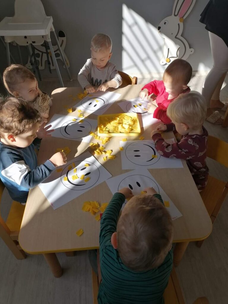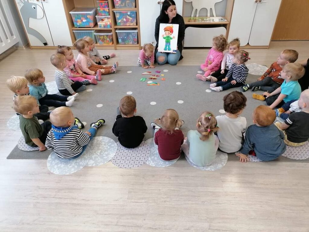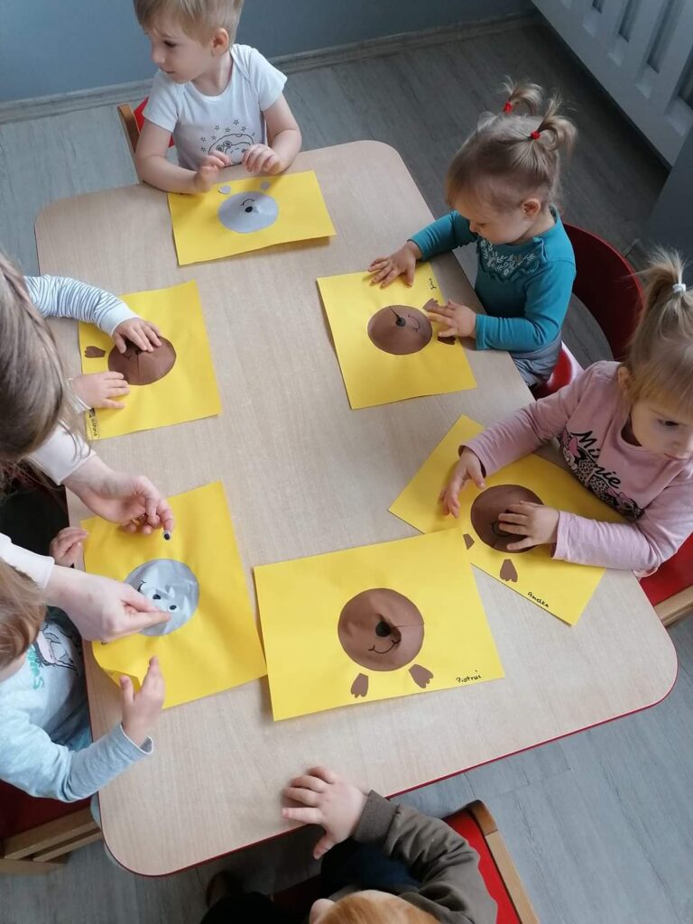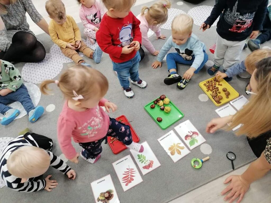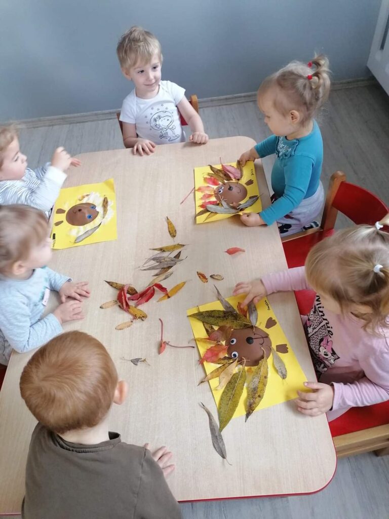 Październik przygotował nam wiele niespodzianek. Nauczyliśmy się jak ubierać się stosownie do pogody.Poznaliśmy jesienne warzywa ,zwierzęta , a nasze maluchy karmiły nawet wiewiórkę i zbierały grzyby.Wykonywaliśmy nowe prace plastyczne i uczyliśmy się piosenek. Kiedy pogoda dopisywała wychodziliśmy na spacer ,a gdy padał deszcz – ciocie umilały nam dzień zajęciami z instrumentami lub odkrywczymi eksperymentami. Odwiedziliśmy też także salę judo na której pracuje Mama naszego kolegi. Listopad tuż tuż… czekamy co przyniesie nam już!